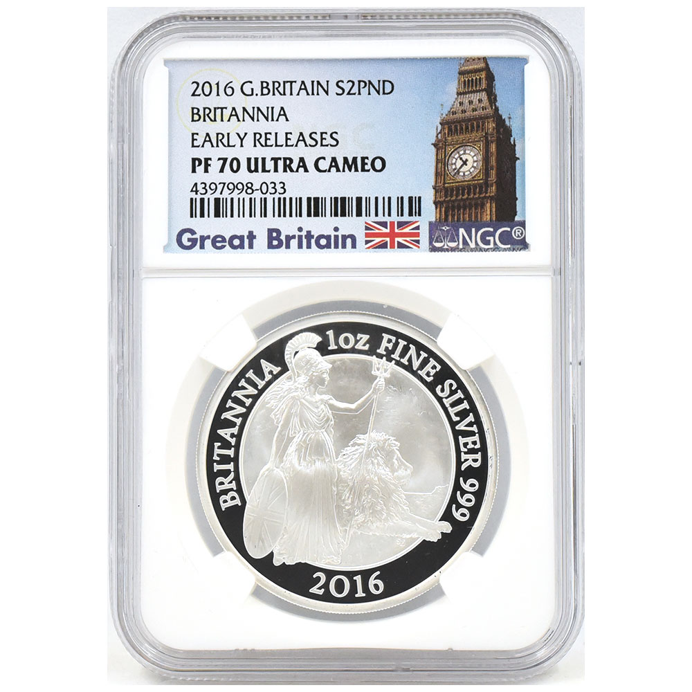 グレード PF70UC 発行年 2016 国名 イギリス 通貨 2ポンド 1オンス 鑑定会社表示名 ブリタニア タイプ アーリーリリース 素材 銀貨