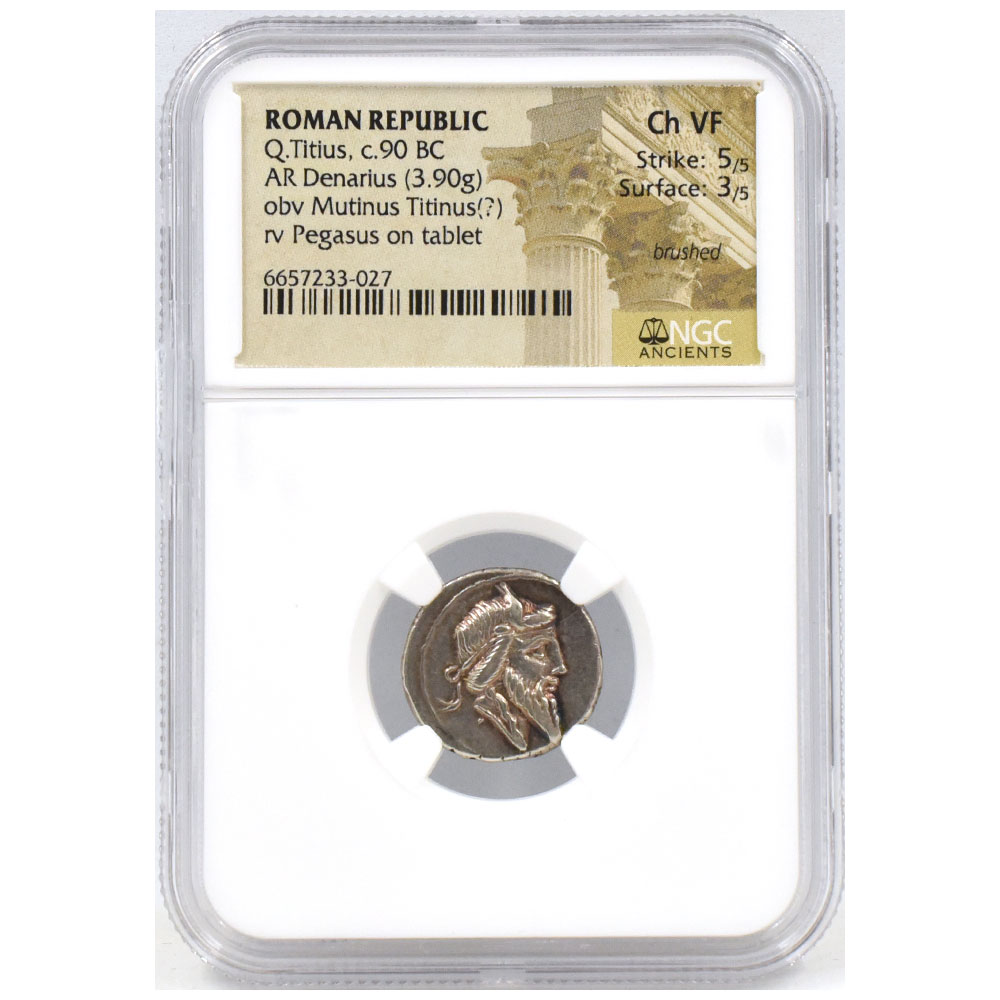 ローマ共和国 c.90BC デナリウス 銀貨 NGC Ch VF Strike:5/5 Surface:3/5 ムティヌス・ティティヌス 台上のペガサス 6657233027