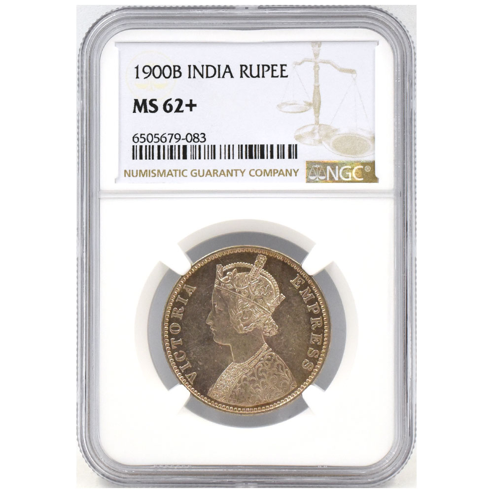 英領インド 1900B ヴィクトリア ルピー 銀貨 NGC MS62+ 6505679083