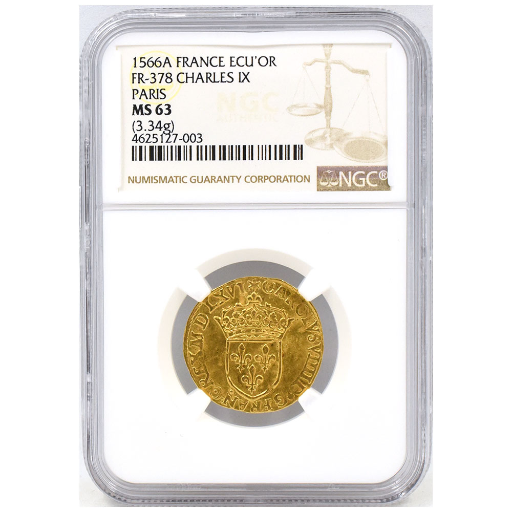 フランス 1566A シャルル9世 エキュ・ドール 金貨 NGC MS63 4625127003