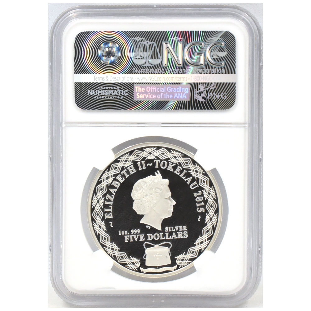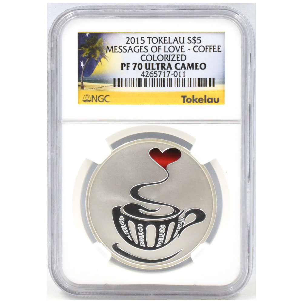 トケラウ 2015 エリザベス2世 5ドル 1オンス 銀貨 NGC PF70UC 愛のメッセージシリーズ コーヒー 4265717011