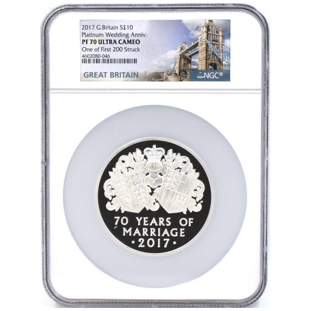 グレード PF70UC 発行年 2017 国名 イギリス 通貨 10ポンド 鑑定会社表示名 結婚70周年記念 タイプ One of First 200 Struck 素材 銀貨