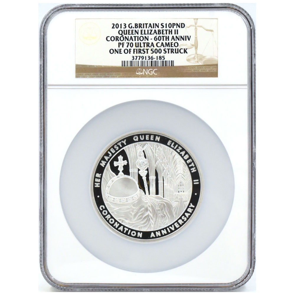 イギリス 2013 エリザベス2世 10ポンド 銀貨 NGC PF70UC 戴冠60周年記念 3779136185