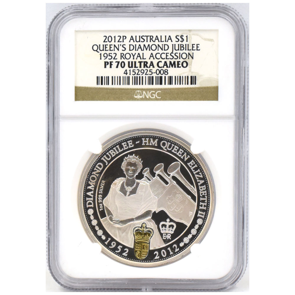 オーストラリア 2012P エリザベス2世 1ドル 1オンス 銀貨 NGC PF70UC 即位60周年記念 ダイアモンドジュビリー 1952王位継承 4152925008