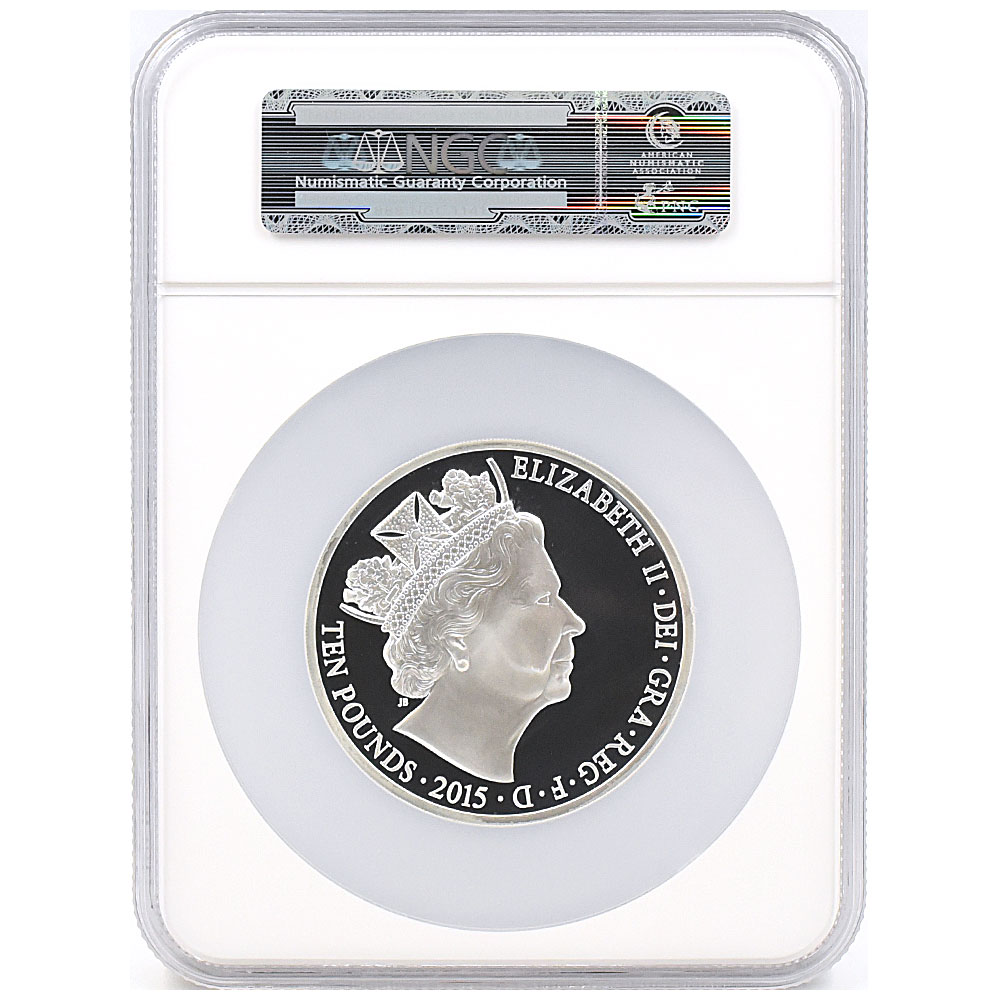 イギリス 2015 エリザベス2世 10ポンド 5オンス 銀貨 NGC PF70UC 最長在位記念 4293883012