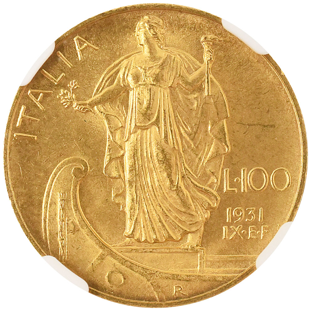グレード MS64+ 発行年 1931R 国名 イタリア 通貨 100リラ 素材 金貨 -