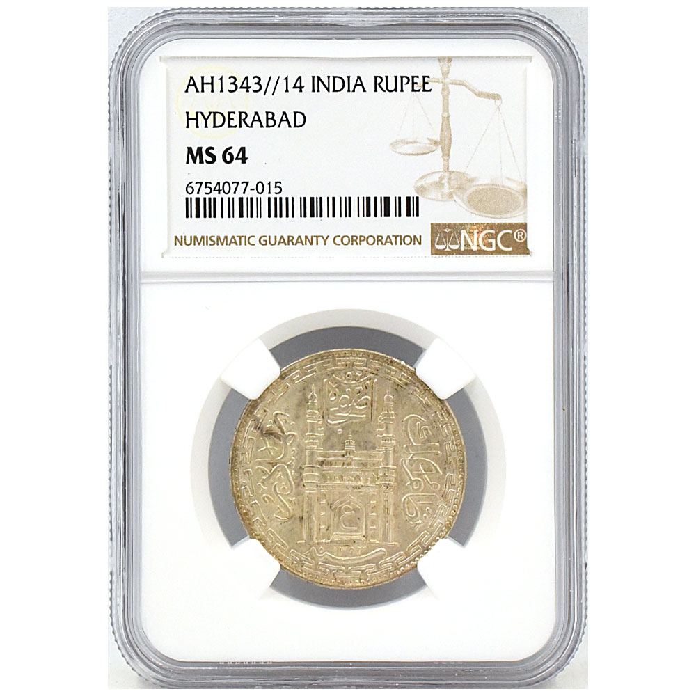 インド AH1343//14 ルピー 銀貨 NGC MS64 ハイデラバード 6754077015