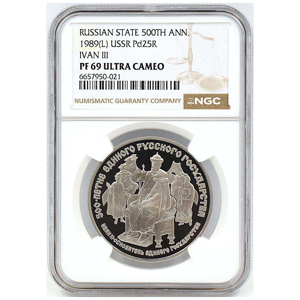 ロシア 1989(L) イヴァン3世 25ルーブル パラジウム貨 NGC PF69UC 国家500年周年記念 6657950021