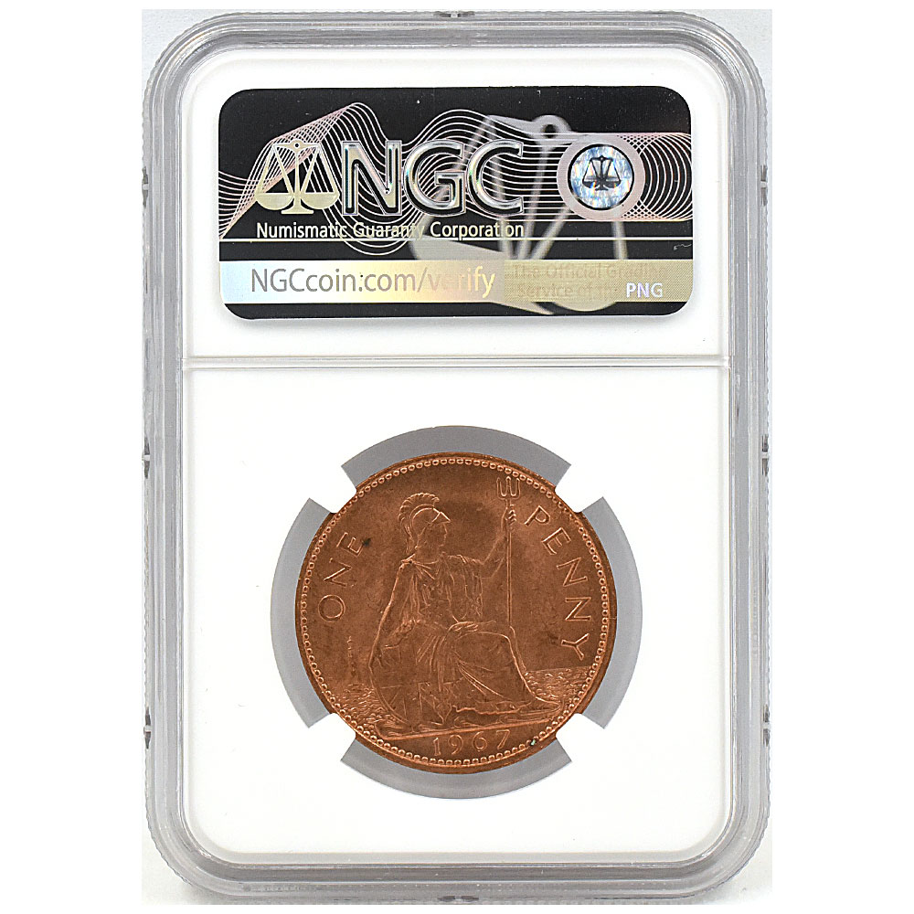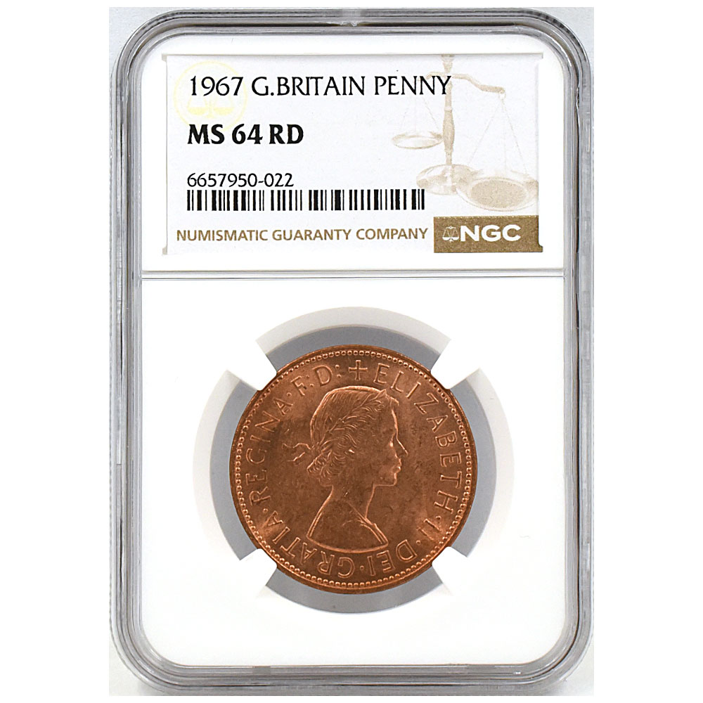 イギリス 1967 エリザベス2世 ペニー 銅貨 NGC MS64RD ブリタニア 6657950022