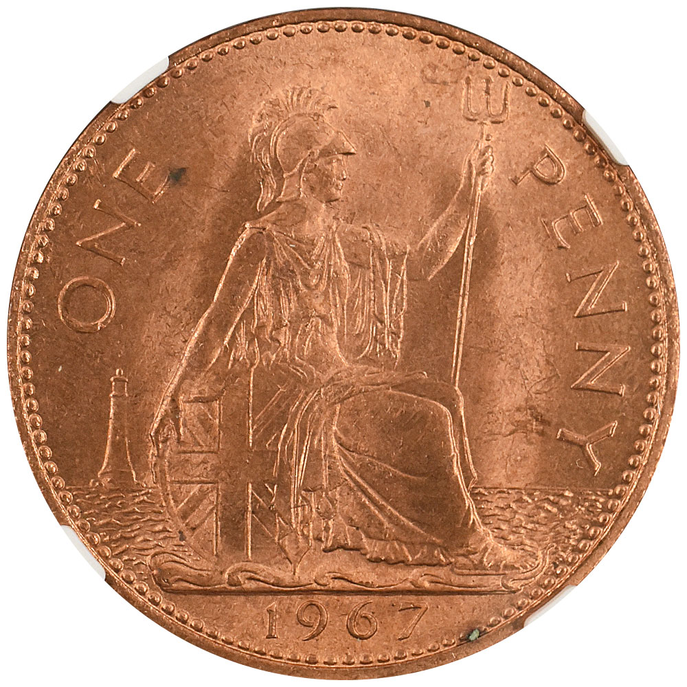 グレード MS64RD 発行年 1967 国名 イギリス 通貨 ペニー 鑑定会社表示名 ブリタニア 素材 銅貨