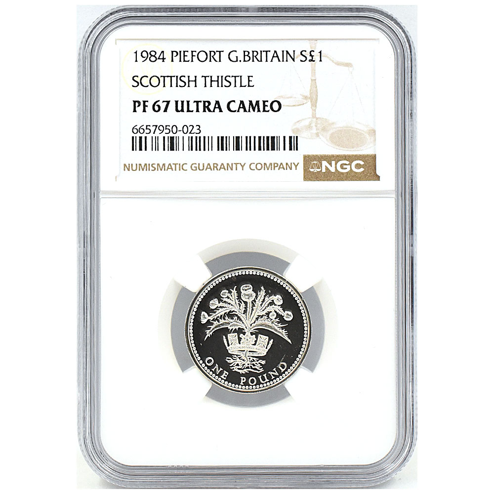 グレード PF67UC 発行年 1984 国名 イギリス 通貨 1ポンド 鑑定会社表示名 スコットランドのアザミ タイプ ピエフォー 素材 銀貨