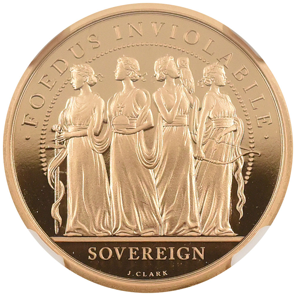 表面はエリザベス2世、裏面はフォーグレイセスとして4人の女神です。