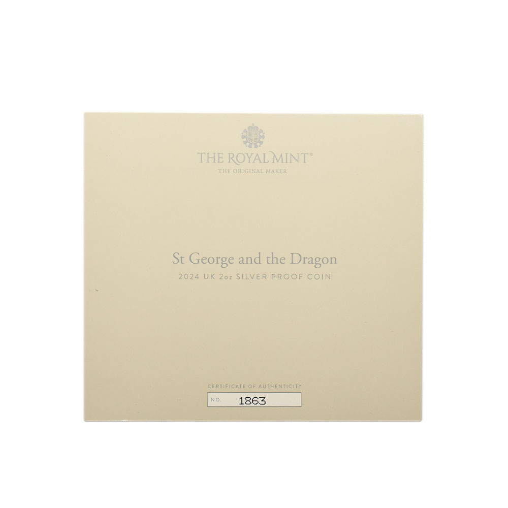 2024 チャールズ3世 ピストルッチ作聖ジョージ竜退治 200ポンド2オンスプルーフ銀貨マット仕上 箱付き