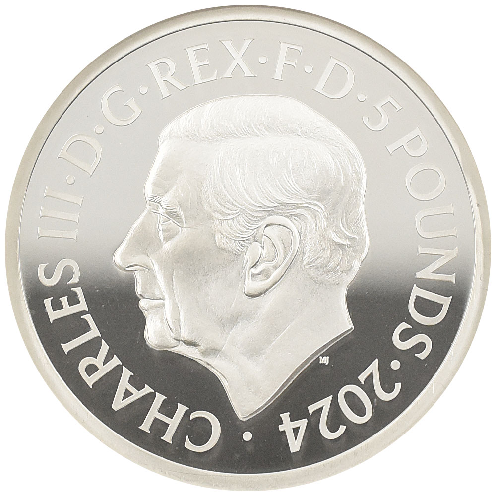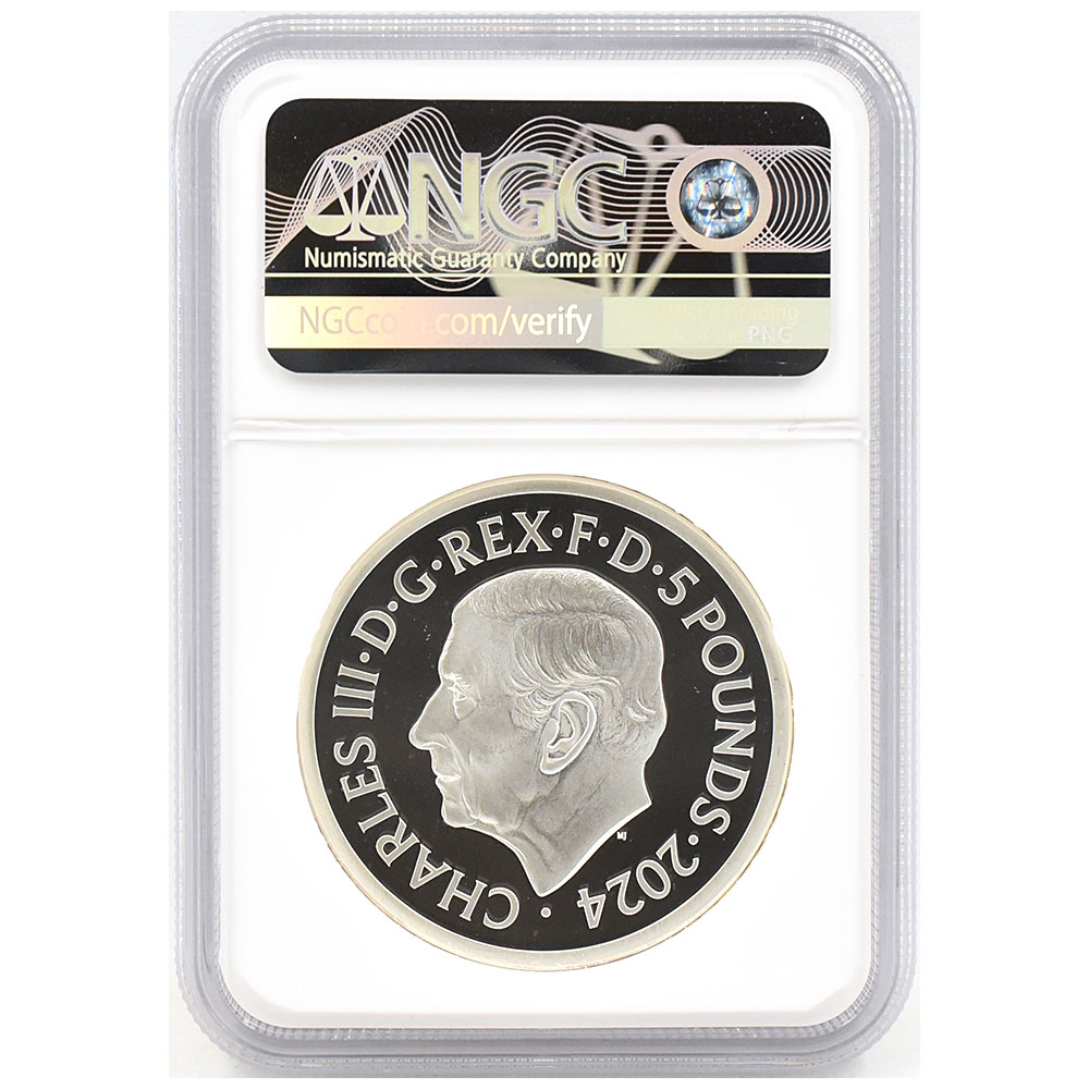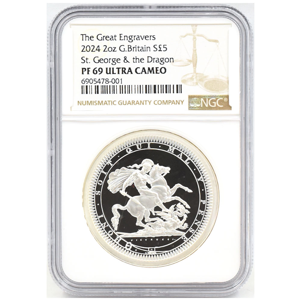 イギリス 2024 チャールズ3世 5ポンド 2オンス 銀貨 NGC PF69UC ピストルッチ作 聖ジョージ竜退治 6905478001