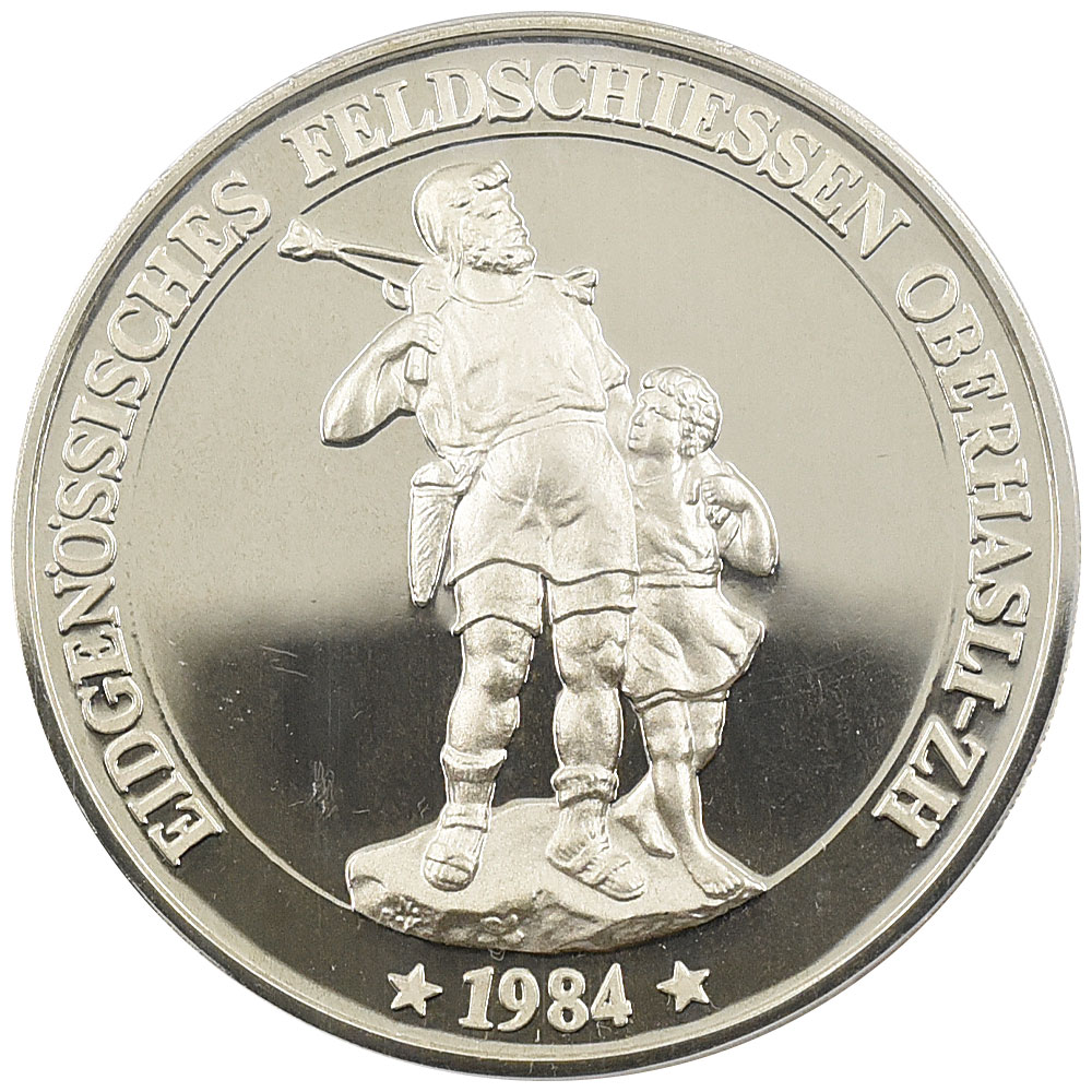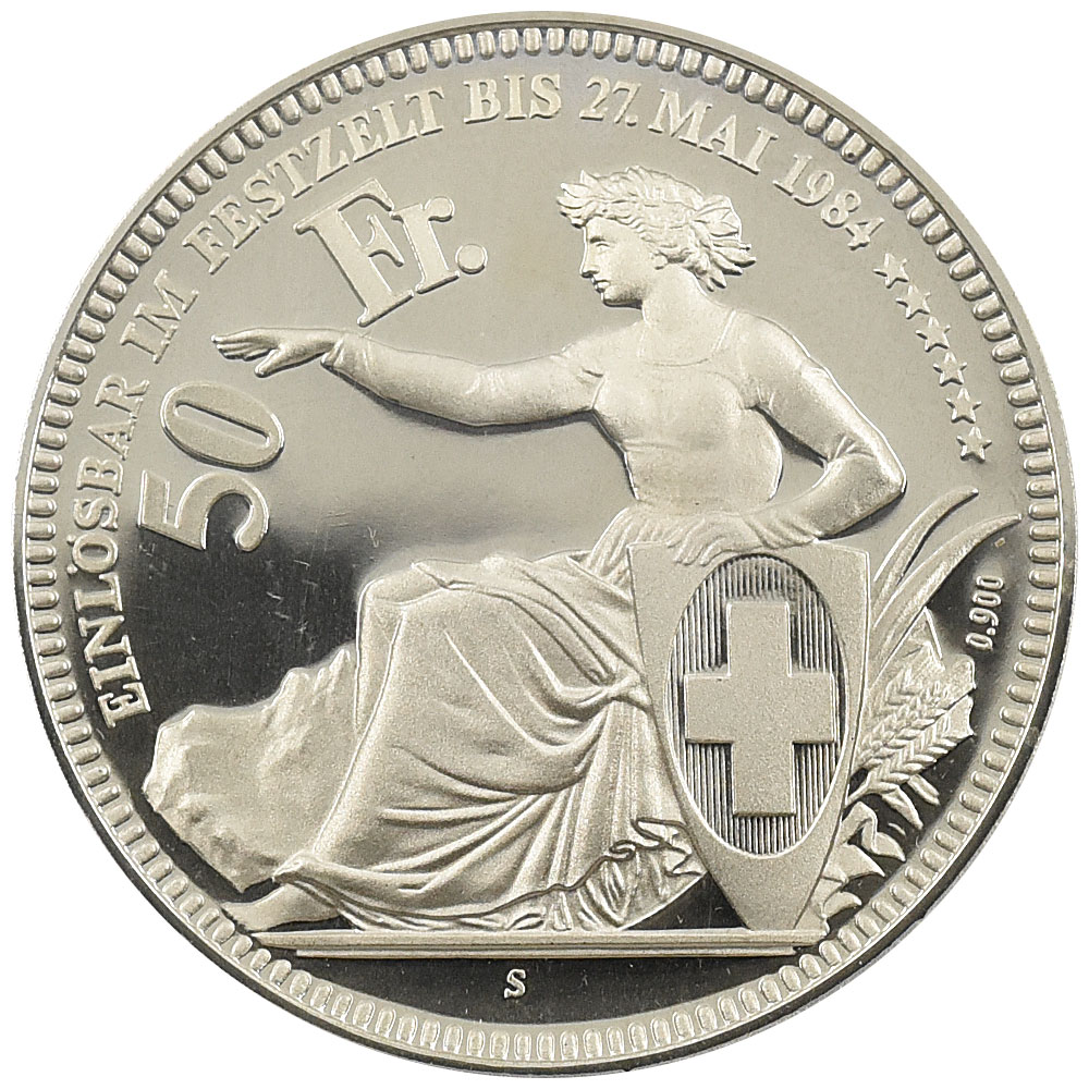 グレード PR68DCAM 発行年 1984 国名 スイス 通貨 50フラン 鑑定会社表示名 オーバーハスリ射撃祭 素材 銀貨