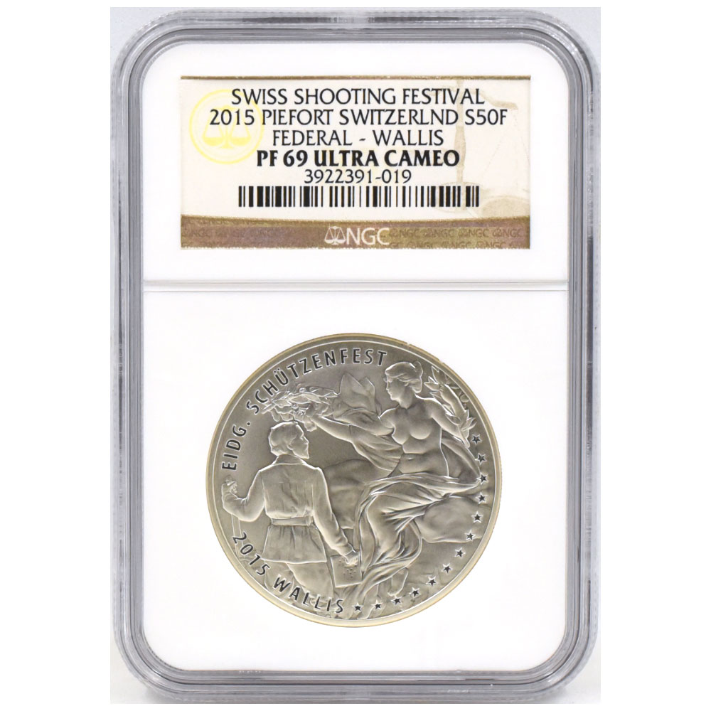 スイス 2015 50フラン 銀貨 NGC PF69UC 連邦射撃祭 ヴァリス州 3922391019