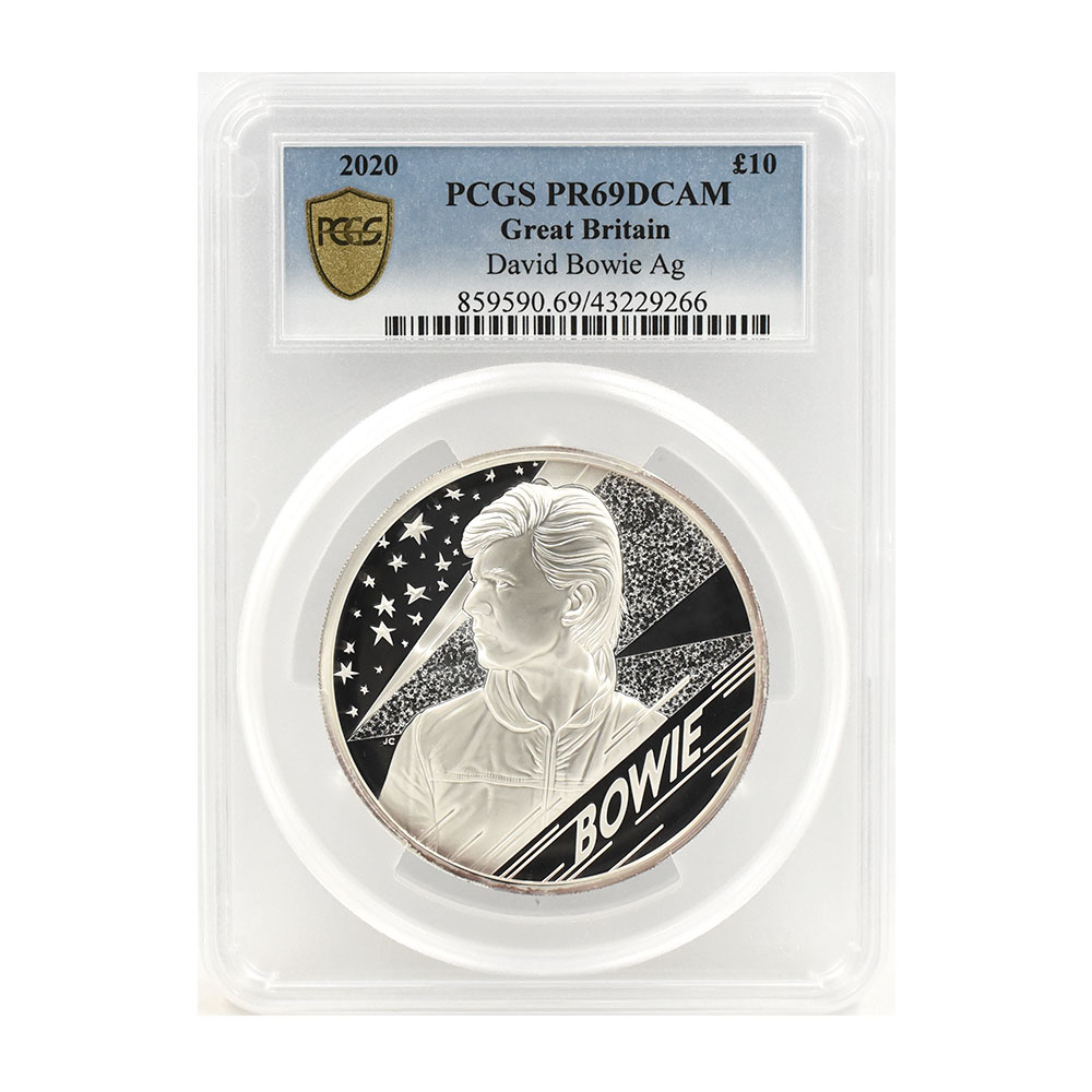 イギリス 2020 エリザベス2世 10ポンド 5オンス 銀貨 PCGS PR69DCAM ミュージックレジェンド デヴィッド・ボウイ 43229266