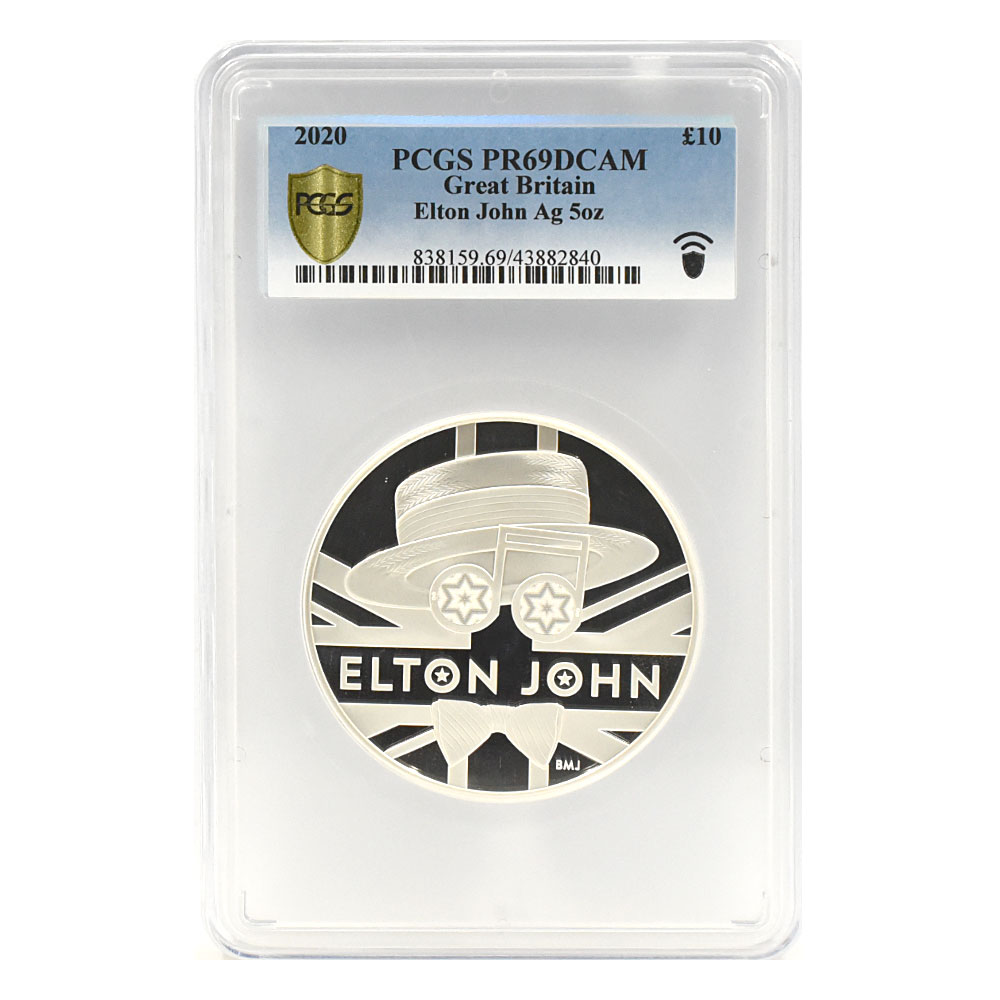 イギリス 2020 エリザベス2世 10ポンド5オンス 銀貨 PCGS PR69DCAM ミュージックレジェンド エルトンジョン 43882840