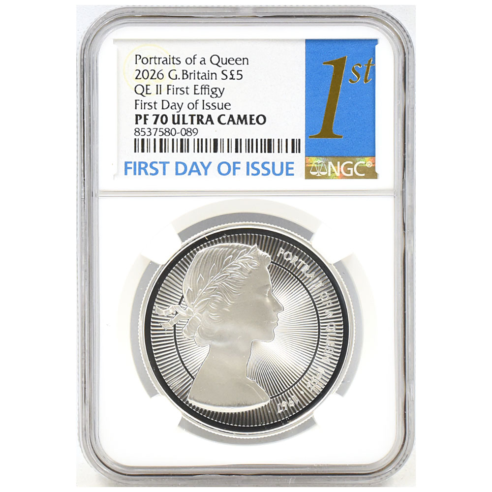 グレード PF70UC 発行年 2026 国名 イギリス 通貨 5ポンド 鑑定会社表示名 エリザベス2世のコイン肖像シリーズ 第一弾 ヤングヤングエリザベス タイプ 発行即日鑑定品 素材 銀貨 -