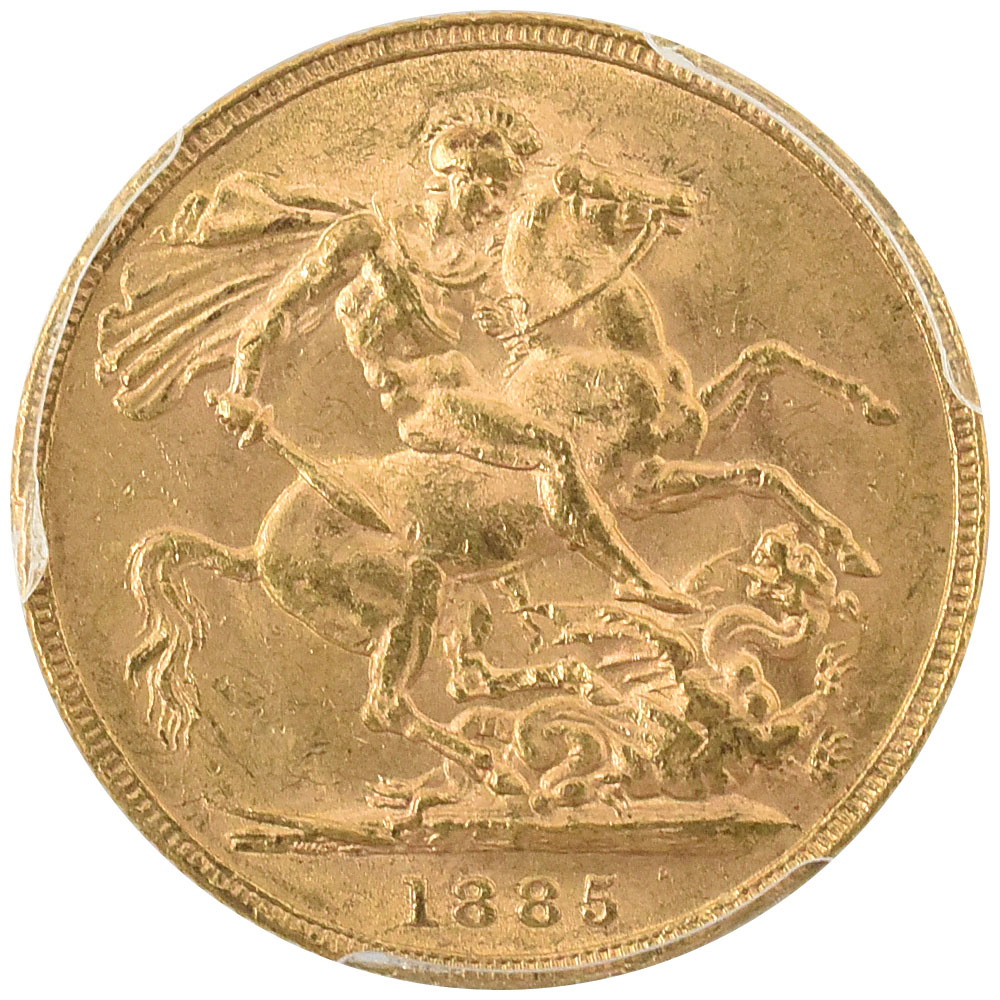 イギリス 1885 ヴィクトリア ソブリン 金貨 PCGS MS62+ 聖ジョージの竜退治 33087169