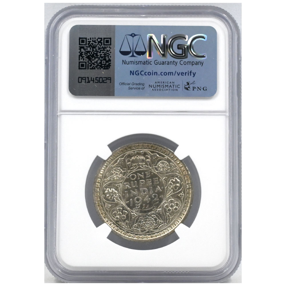 インド 1942(B) ジョージ6世 ルピー 銀貨 NGC MS62 6741687026