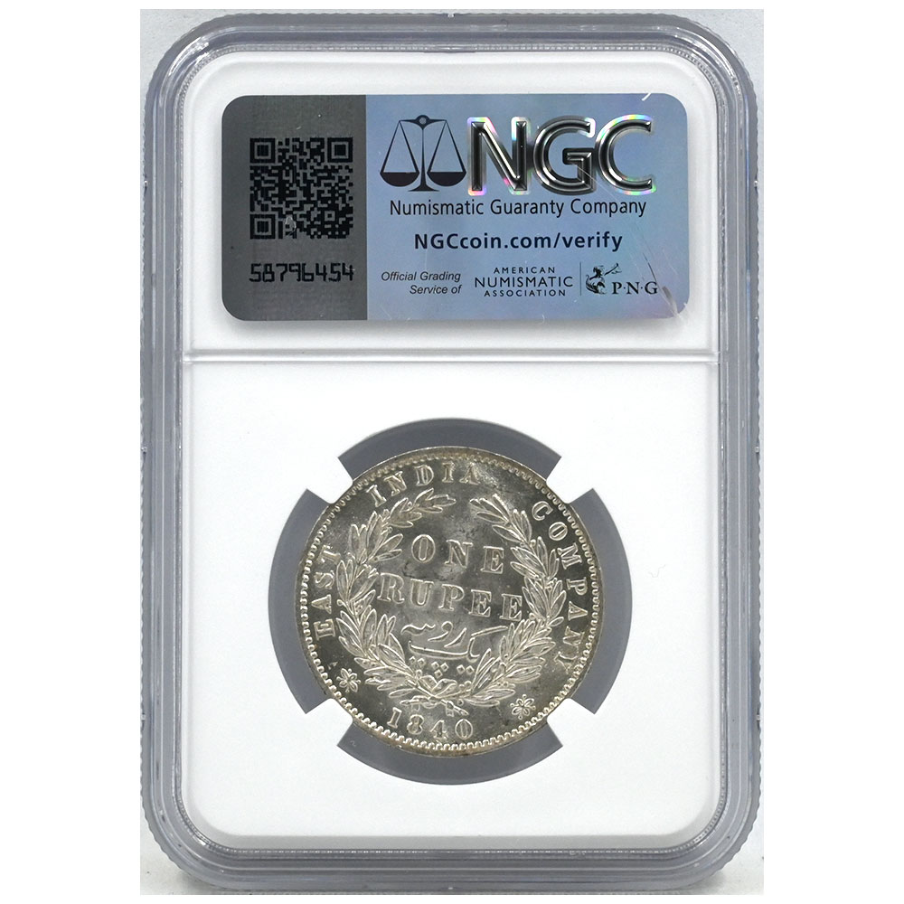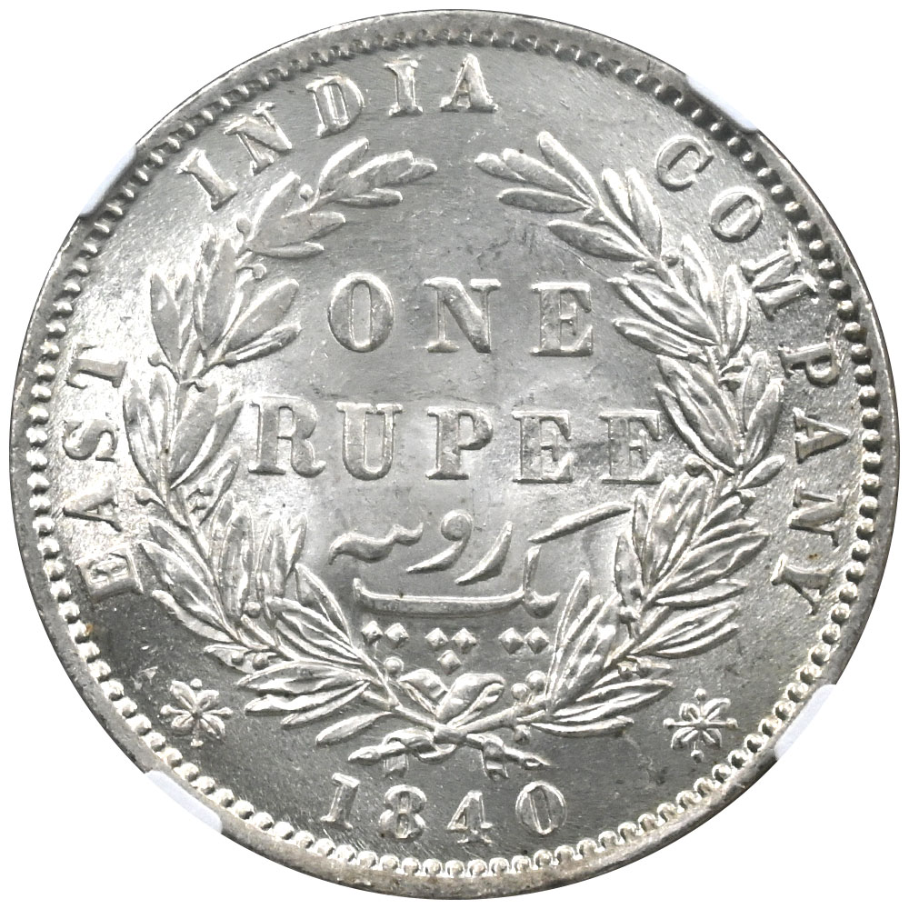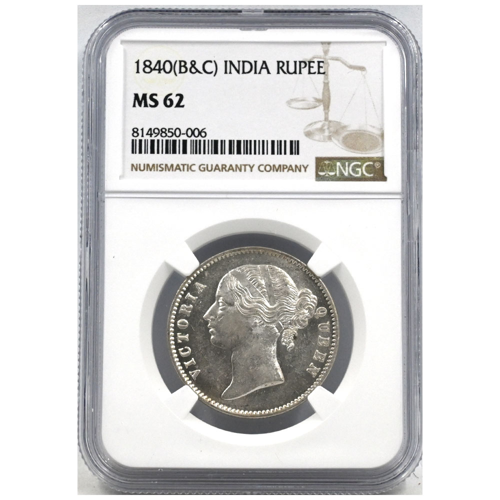 インド 1840(B&C) ヴィクトリア ルピー 銀貨 NGC MS62 8149850006